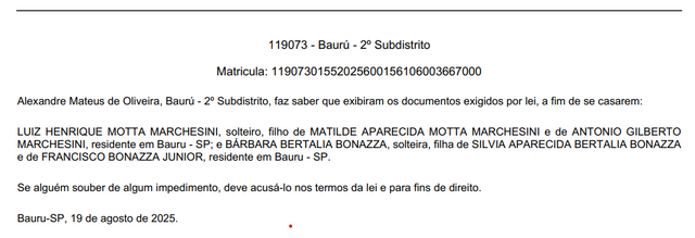 Agora só falta o "SIM" porque o Edital de Proclamas já foi publicado e começou a contar o tempo